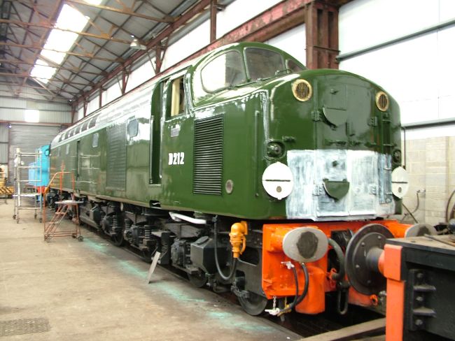 An unfortunately blurred picture of D212, freshly repainted in green and about to have her nameplates fitted.